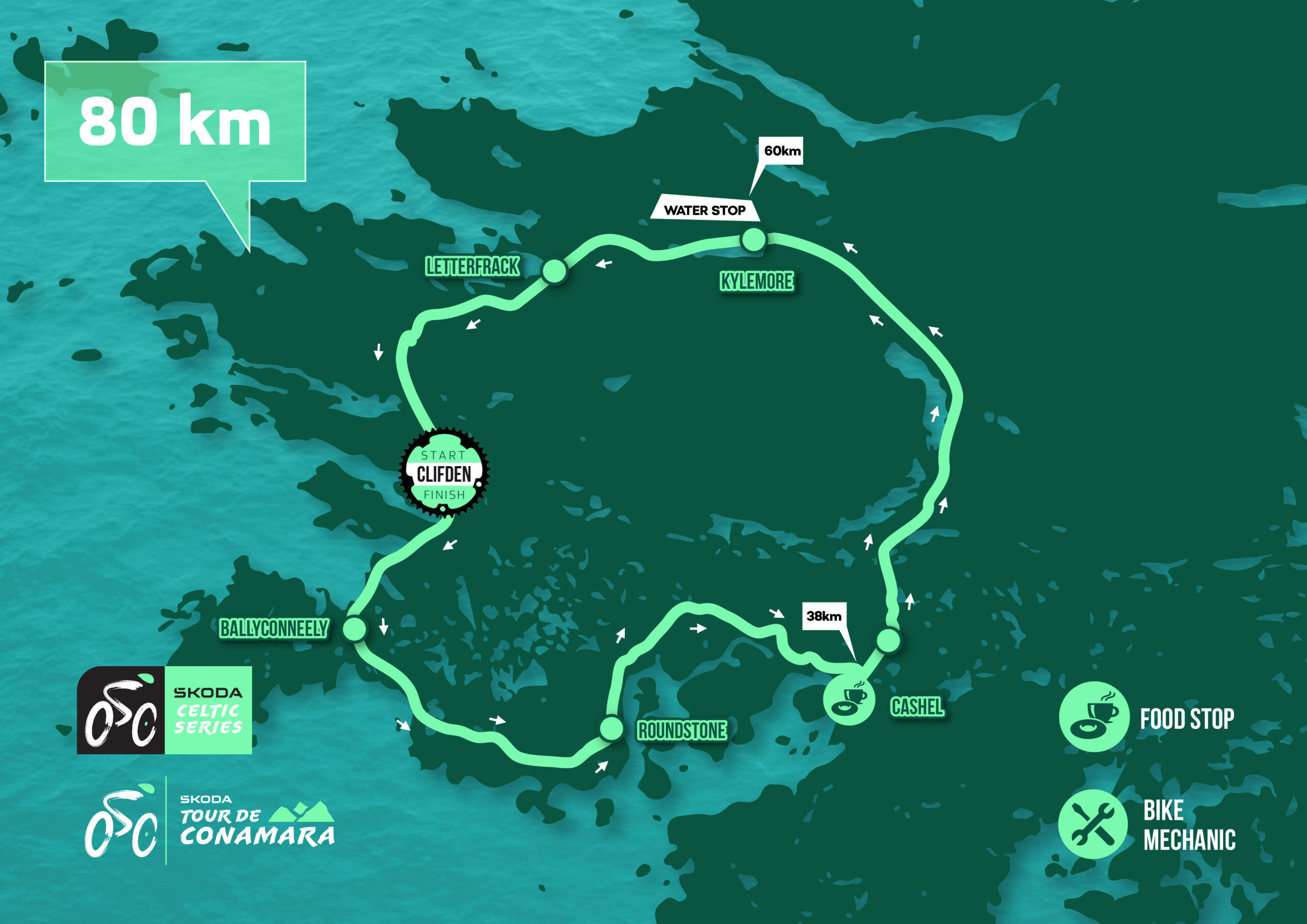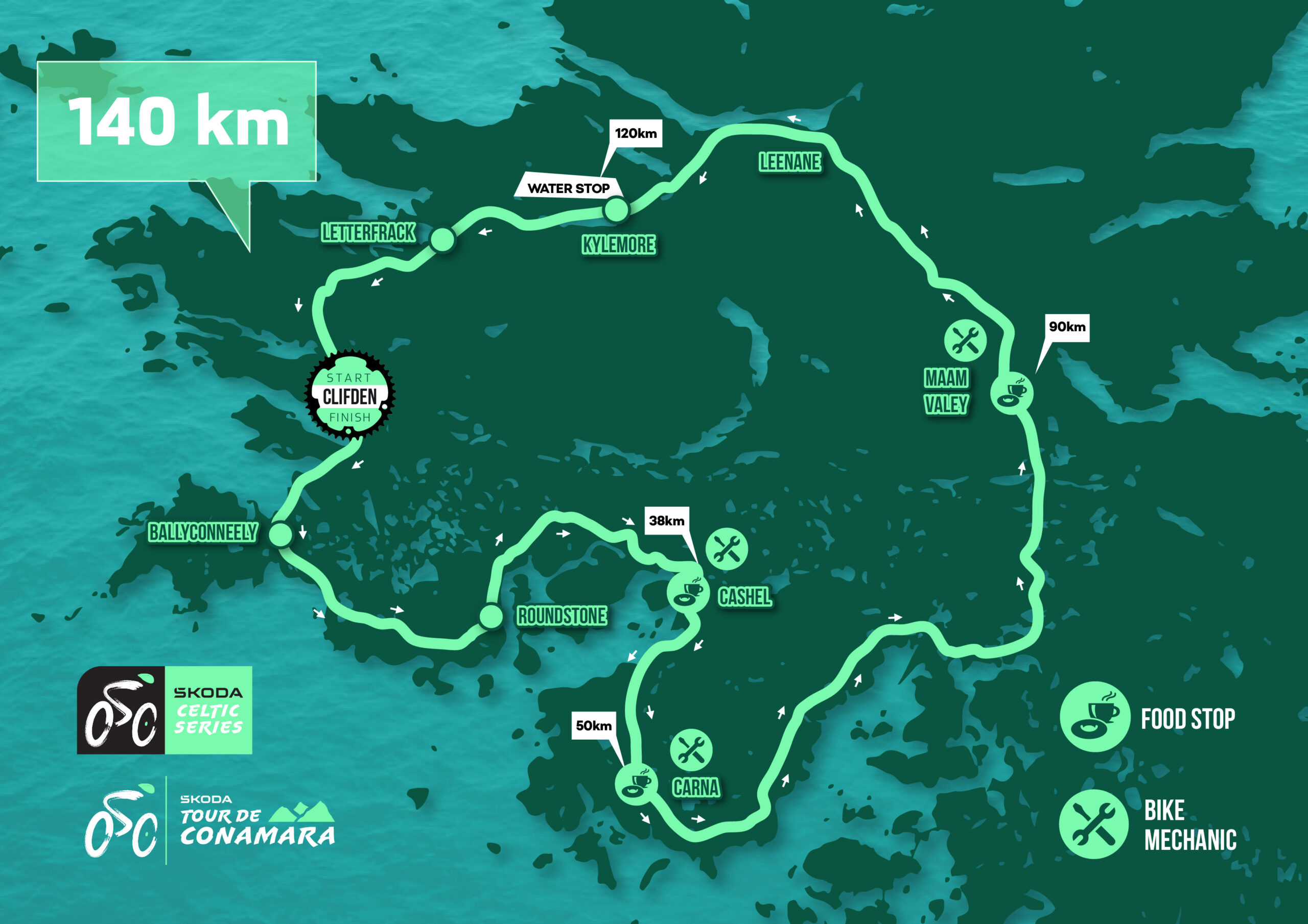 After Letterfrack you will enjoy the most spectacular finish to a sportive through Connemara National Park. It’s a steady downward pedal back into Clifden for the famous ŠKODA Tour de Conamara welcome and your completion of the most picturesque sportive in Ireland. Your Summer of Cycling will have officially started.